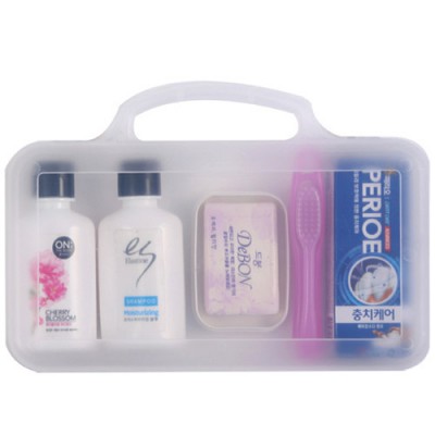 | 기타사항 | •Size : 200ⅹ140ⅹ40mm •엘라스틴샴푸, 린스50ml •페리오치약20g,접이식칫솔,비누,비누곽 (종이케이스별도 200원) ※구성품 교체 가능 / 칼라인쇄시 100원추가 |